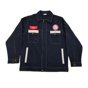 ★5:高性能防護(hù)面料,顏色為藏青色,加入高可視的檸檬綠色,左前胸、后背需采用熱轉(zhuǎn)印反光識(shí)別技術(shù),夜間具有安全警示功能。